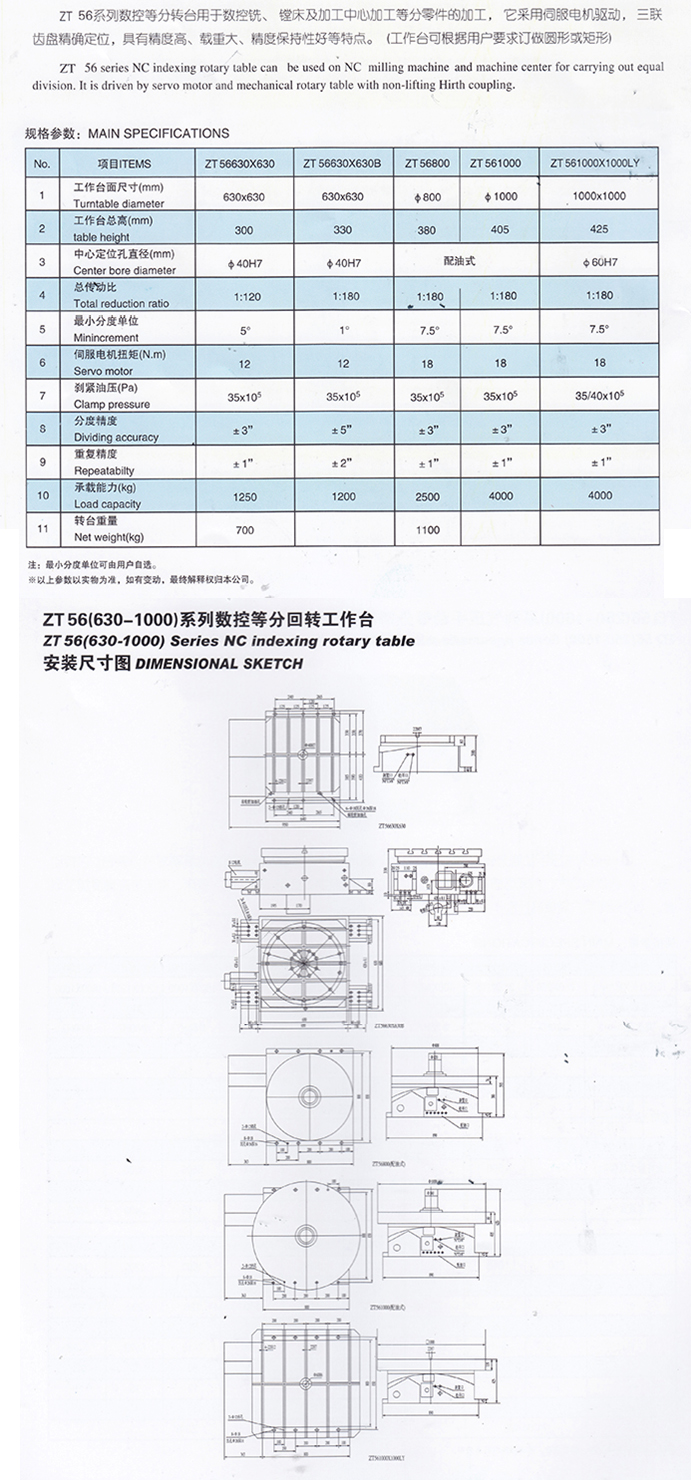 ZT56(400-500)系列數(shù)控等分回轉(zhuǎn)工作臺(tái)