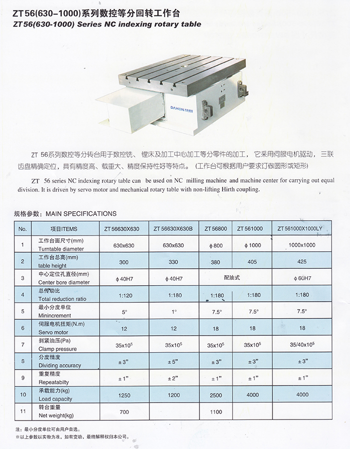 ZT56(630-1000)系列數(shù)控等分回轉(zhuǎn)工作臺(tái)