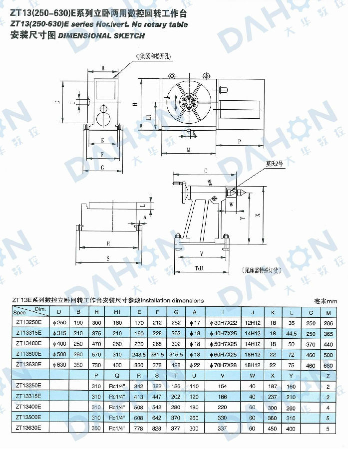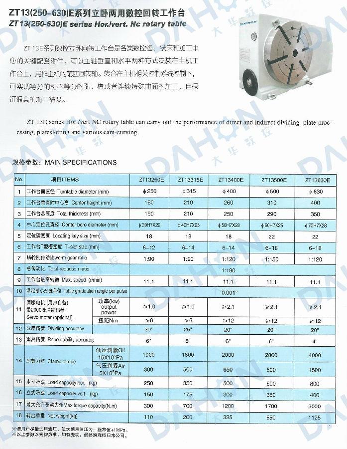 ZT13E系列數(shù)控立臥回轉(zhuǎn)工作臺是各類數(shù)控鏜、銑床和加工中心的關鍵配套附件,可以主軸垂直和水平兩種方式安裝在主機工作臺上,用作主機的第四軸(第四回轉(zhuǎn)軸)。轉(zhuǎn)臺在主機相關控制系統(tǒng)控制下,可實現(xiàn)等分的和不等分的孔、槽或者連續(xù)特殊曲面的加工,且保證很高的加工精度。