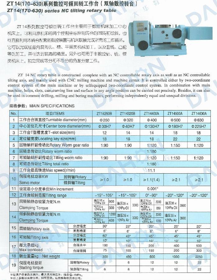 ZT14系列數(shù)控可傾回轉(zhuǎn)工作臺主要用于數(shù)控機(jī)床加工中心機(jī)床上,可利用原機(jī)床的兩個控制坐標(biāo)控制轉(zhuǎn)臺的回轉(zhuǎn)和傾斜,也可直接利用本轉(zhuǎn)臺配套的數(shù)控裝置與機(jī)床聯(lián)接完成所需的工作循環(huán)。它可以完成任意角度的孔、槽、平面類機(jī)械加工,以及曲線、凸輪等的加工,并可達(dá)到較高的精度。另外也可用于非數(shù)控鉆、銑、鏜類機(jī)床上,獨(dú)立完成等分和不等分的角度分度工作。該設(shè)備是一種雙軸數(shù)控轉(zhuǎn)臺。